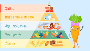 Ilustrativno se prikazuje koje su namirnice štetne po zdravlje (velika koncentracija soli, šećera, masnoće i bojenih materija i dr).