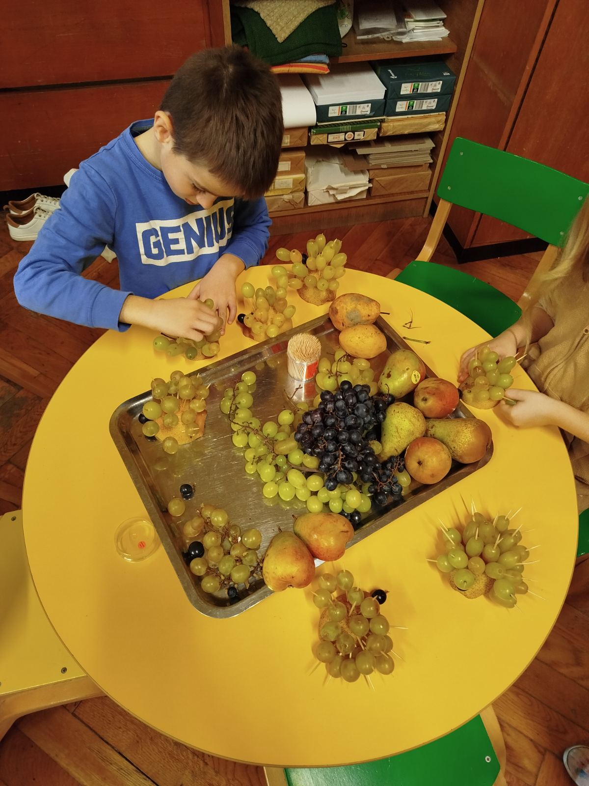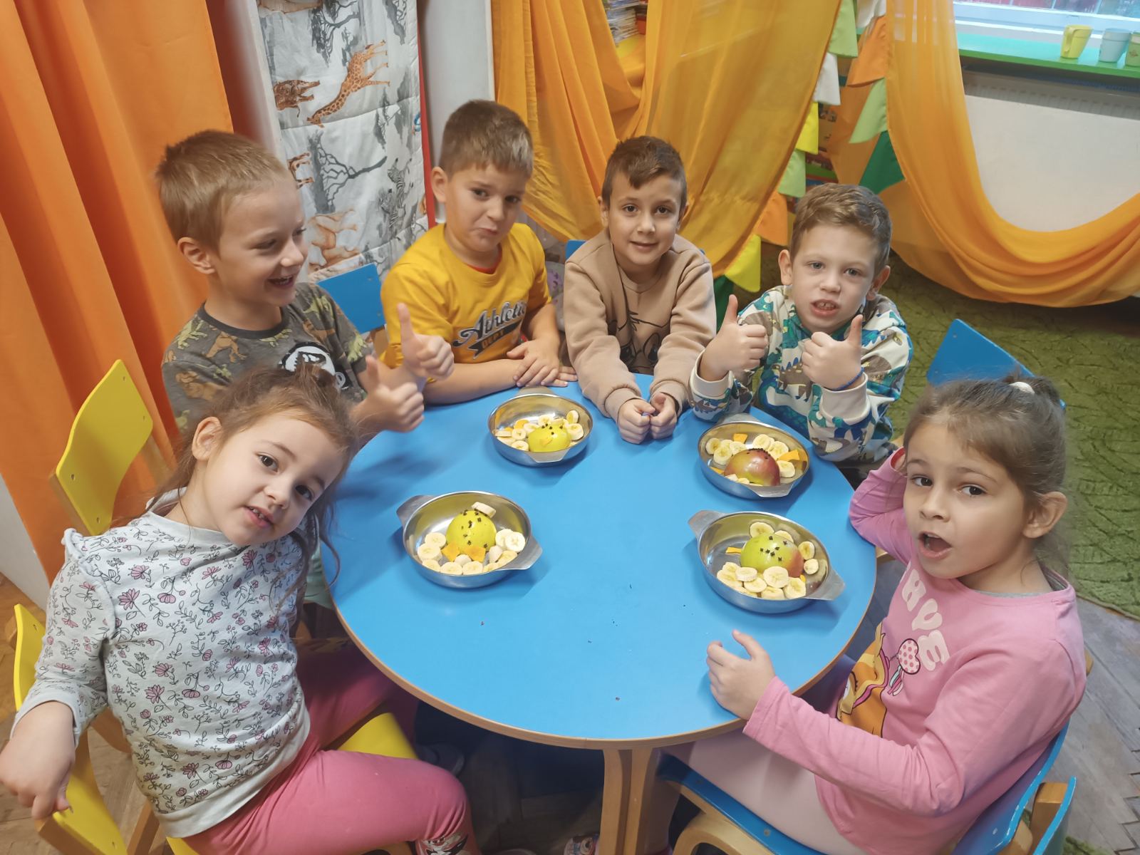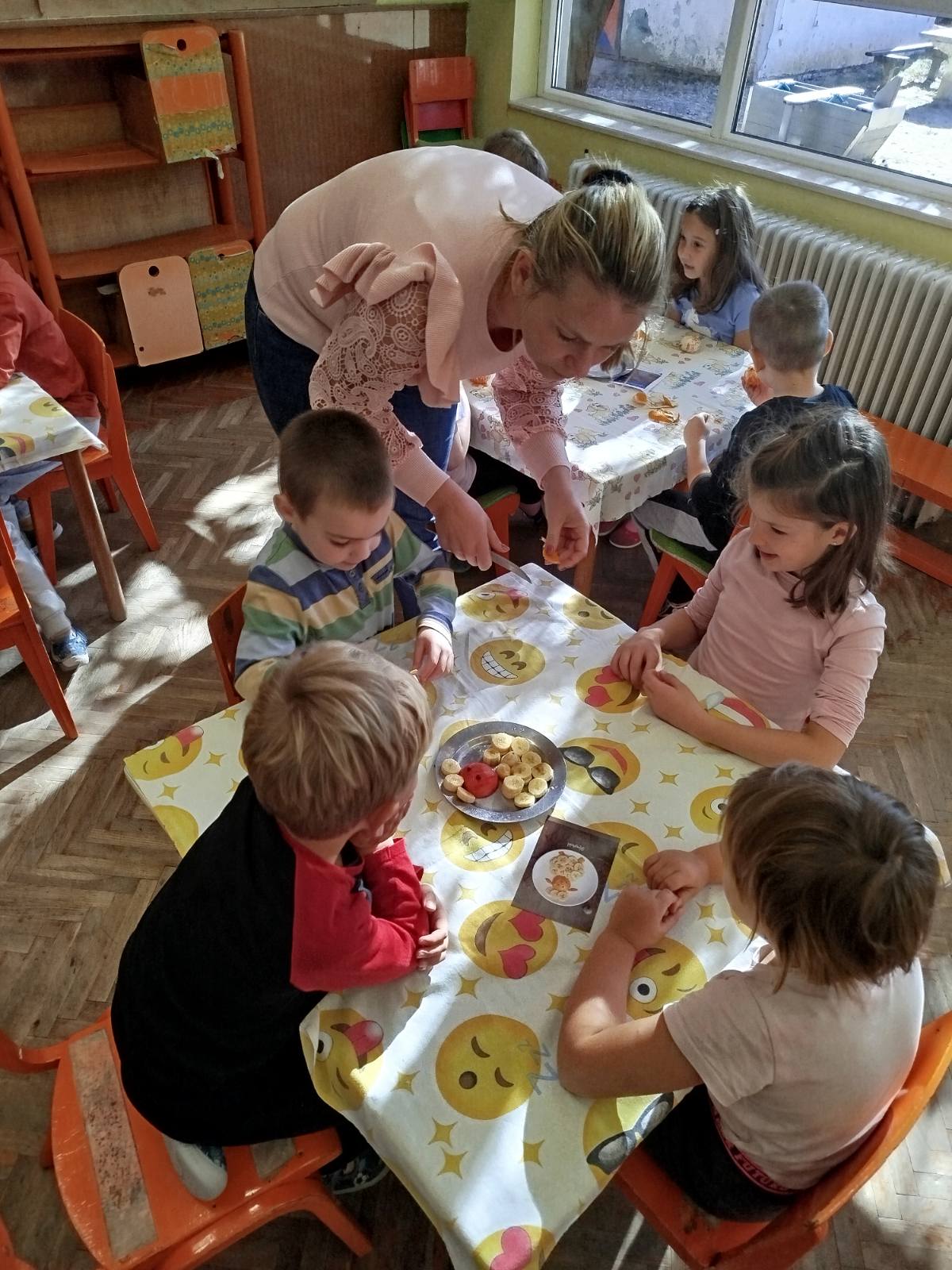 U predškolskoj grupi smo zajedno napravili figure od voća koje su deca pojeli.
