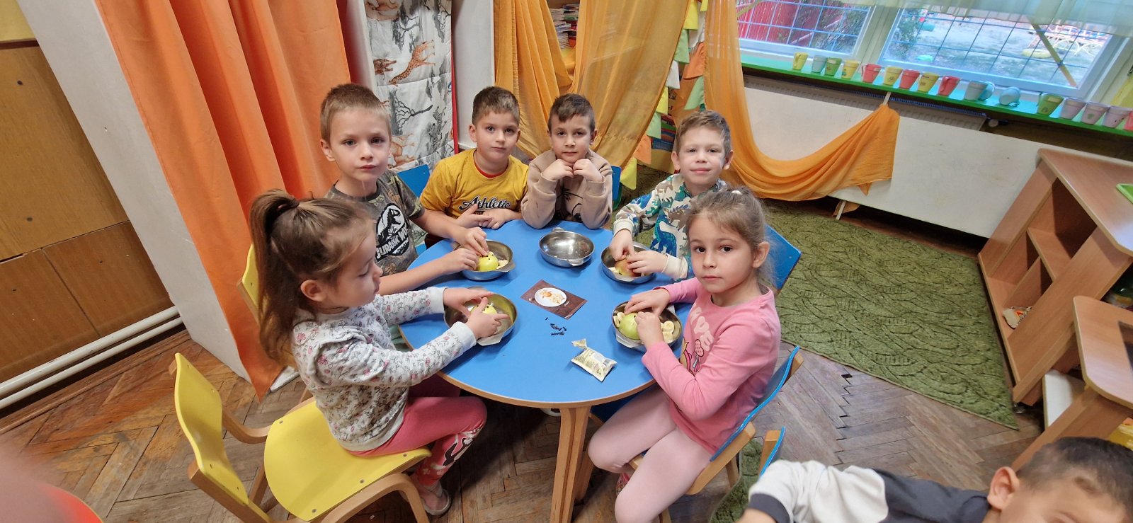 A futás után sárgarépát és almát rágcsáltak a gyermekek.